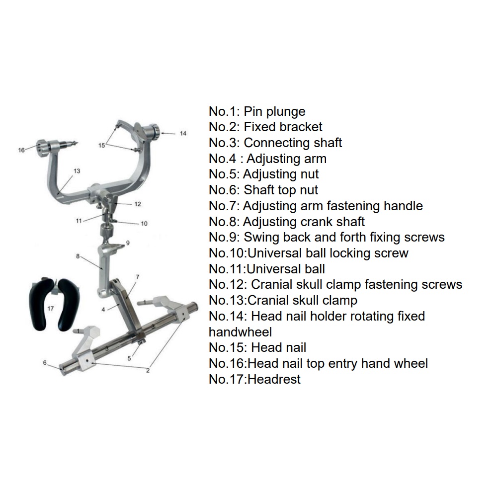 A: Yes. The HE-II Stainless Steel Skull Clamp is engineered with a universal plunger system ranging from 90mm to 590mm, compatible with standard OR table side rails from major manufacturers including Maquet, Stryker, and Skytron. No proprietary adapter is required.